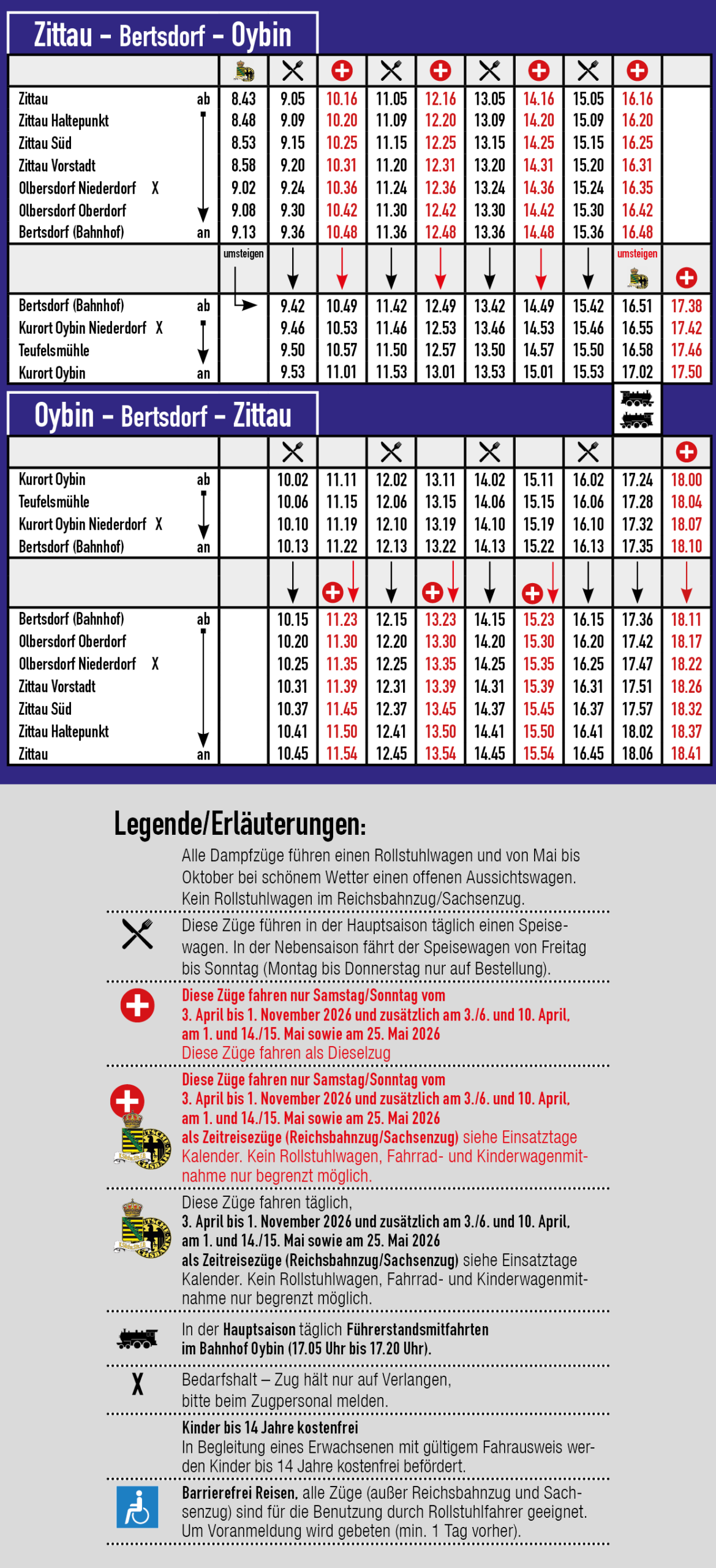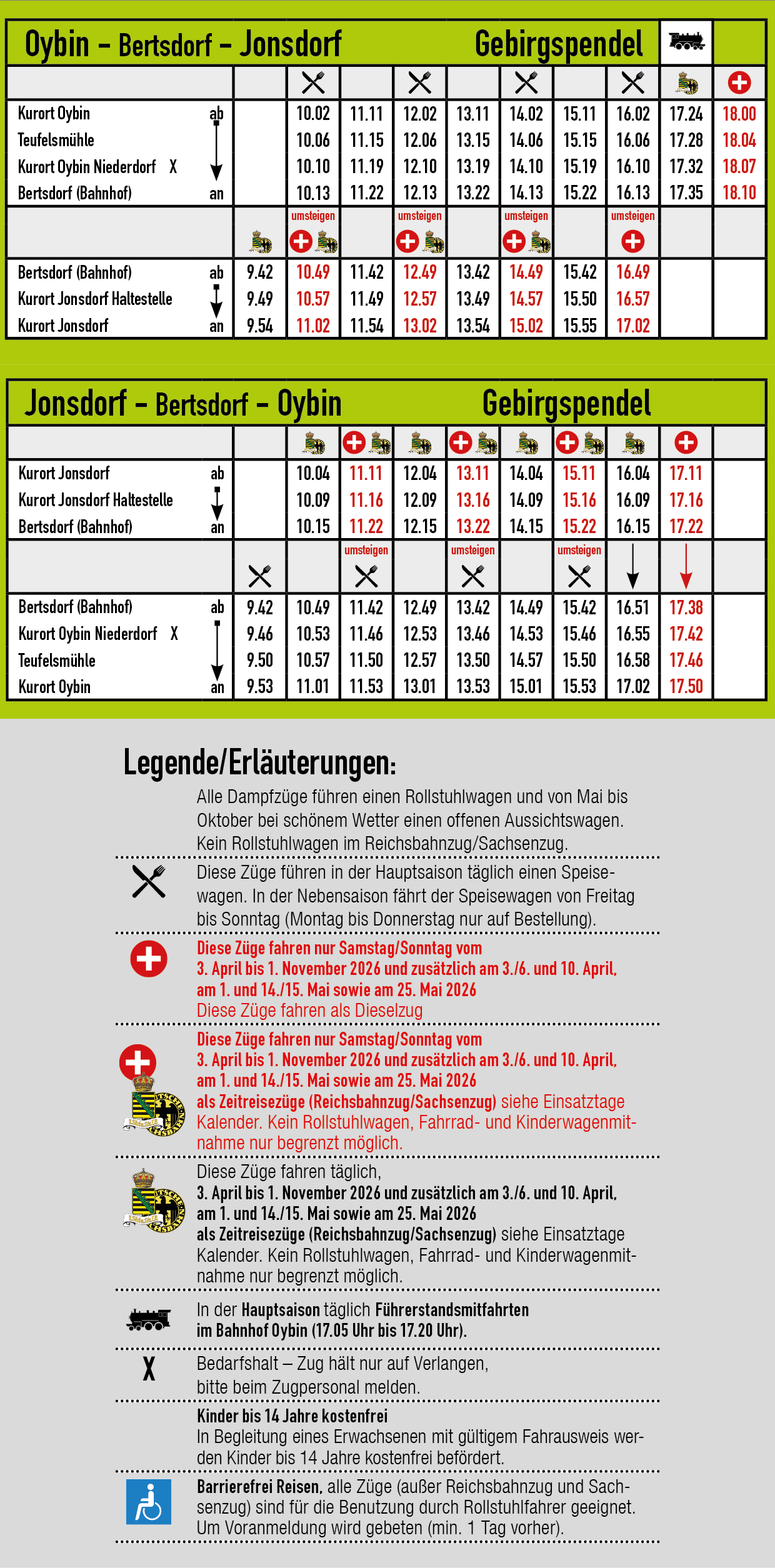20. Dezember 2025 bis 4. Januar 2026, 31. Januar 2026 bis 22. Februar 2026, 28. März 2026 bis 02. April 2026